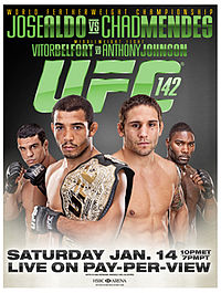 NJ United Mixed Martial Arts will be having our UFC 142 Aldo vs. Mendes party Saturday night January 14th at Hooters Restaurant in Wayne, NJ. UFC 142 is being held in Brazil, the birth place of modern day mixed martial arts. It should be an awesome card with a great main event and an awesome co-main event fight. In the main event UFC champion Jose Aldo takes on top contender Chad Mendes, while Vitor Belfort takes on Anthony Johnson in the co-main event. Don’t miss this card!
